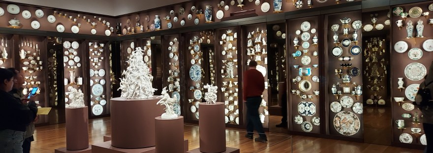 I adore all decorative art, but especially porcelain. I can spend hours wandering from case to case, comparing one piece to the next, trying to guess the manufacturers and then recalling what I have seen from that maker before. Someone had the magnificent idea of putting everything in a database and giving the museum goers access to the database from a wall-sized screen. Talk about a fail. Technology proved the Peter Principle!