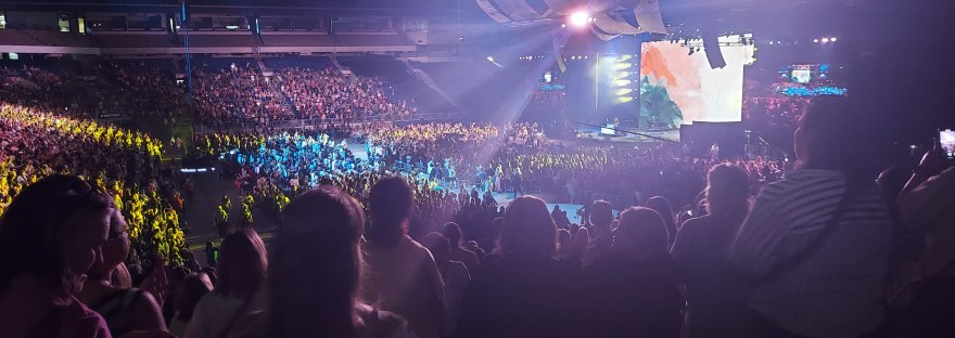 Joyce’s conference was going to begin at 7, so the nap ended and we got back on the road. Doors opened quite a while before we got to the Alamo Dome, so we didn’t exactly have optimal seats, but we enjoyed the opening festivities.