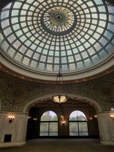 But wait, what’s this! I could see Millennial Park across the street but we had happened upon Chicago Cultural Center. As much as I wanted to get over there and find Park Grill, I took a deep breath and agreed we should go in and look around the Cultural Center. It is a remarkable building with beautiful architectural feature. Should you go to Chicago I think you should take a look at it, so I was not going to deny Bill a peek, just because I was anxious about what was next.