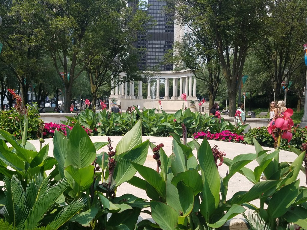 One of my favorite memories from a previous visit to Chicago was lunch at the Park Grill in Millennium Park. Bill had been in a training class, so he had not joined me, but the memory of that lunch stuck with me. Yes, the burger had been good and the service attentive, but the real treat had been sitting in the middle of everything, watching it go by.